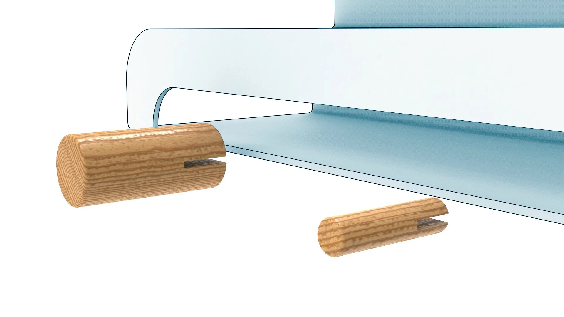 Dowels tension fit to the metal shelf
