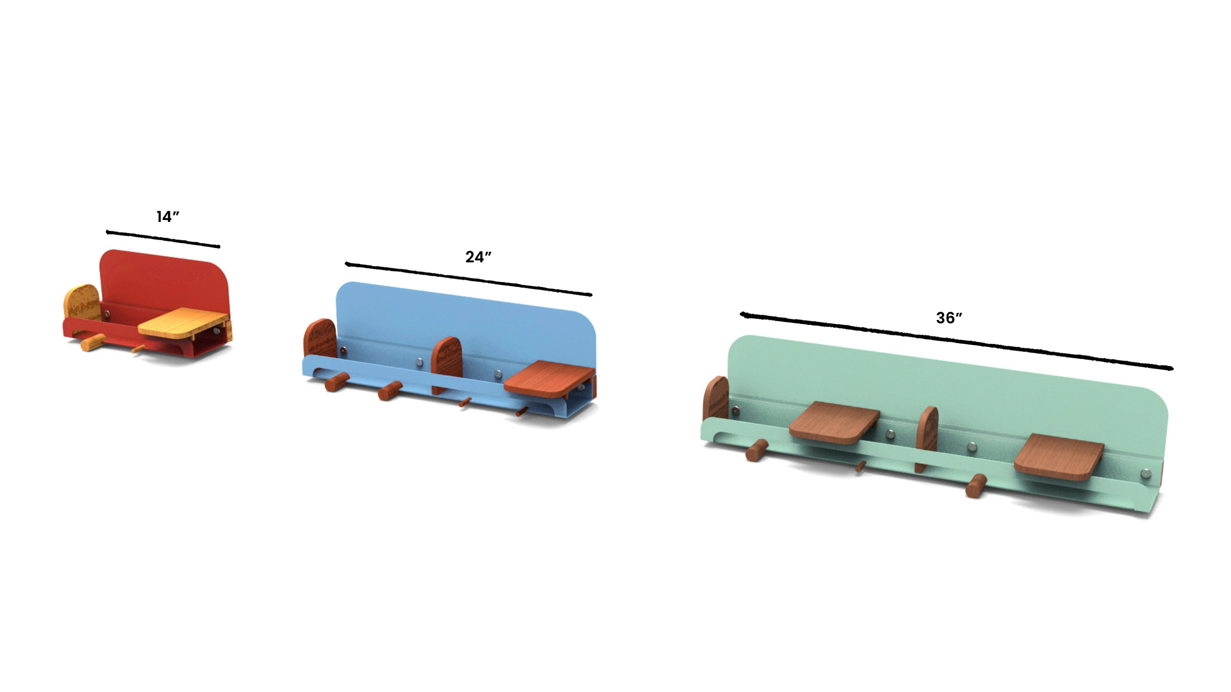 Personalized arrangements can be created with 3 different shelf sizes and choice of attachments, for various uses or multiple people