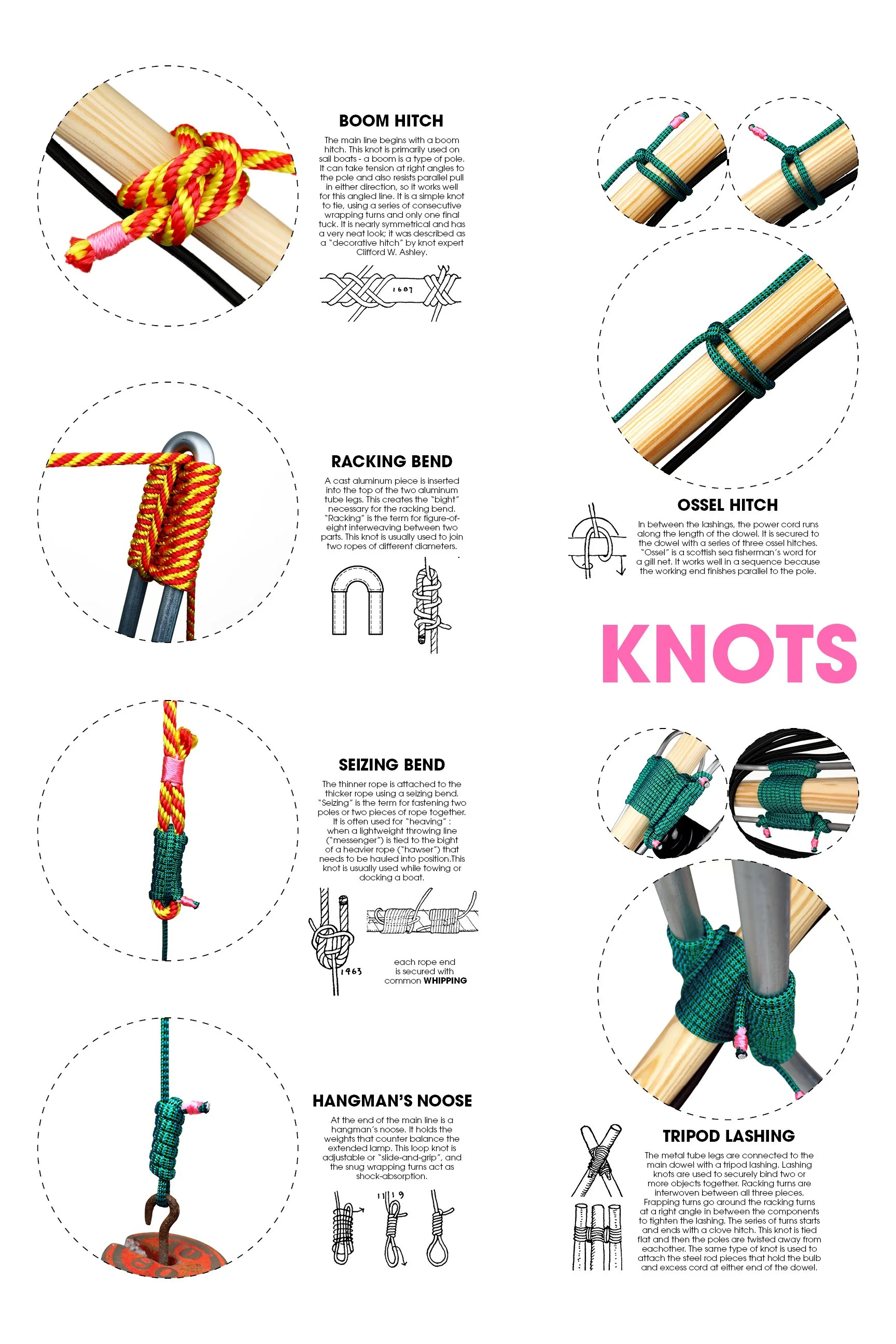 I referenced many historical examples of lighting design to consider how existing structures might be recreated using knots. I was inspired by Italian designers from the 60s and 70s like the Castiglioni brothers of Flos.