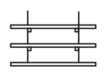 Two identical bent steel rods form an assembly which holds the excess power cord. Both are attached to the bottom end of the dowel also with tripod lashings. The extended parts act like a cleat commonly used on boats to store rope.