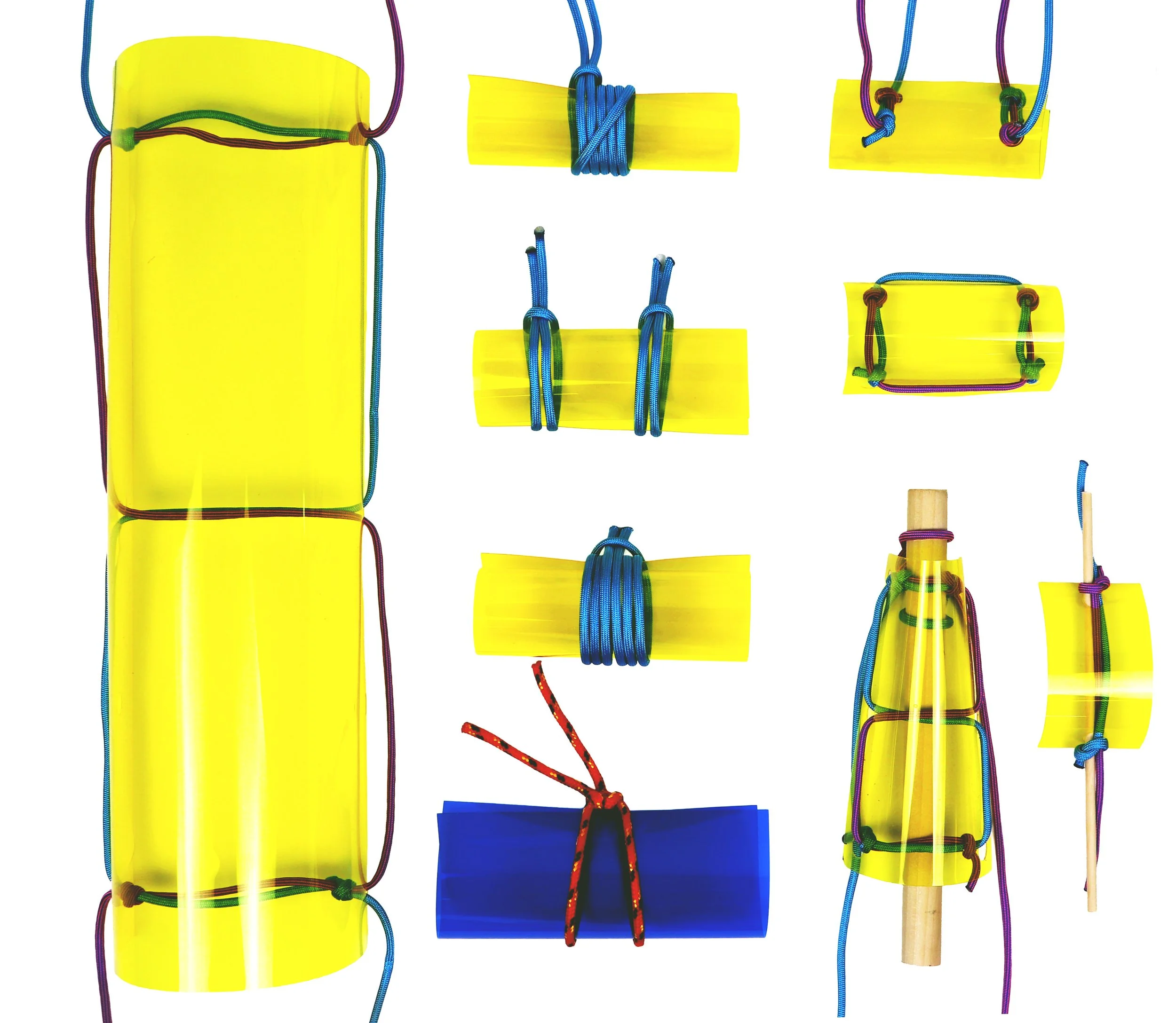 Many textile techniques can combine the structure and flexibility necessary for adaptable design. I chose to further explore the most obvious form of pliable connection in soft craft: knots. The same line, or cord, can be used to create various points of connection and expansive systems.
