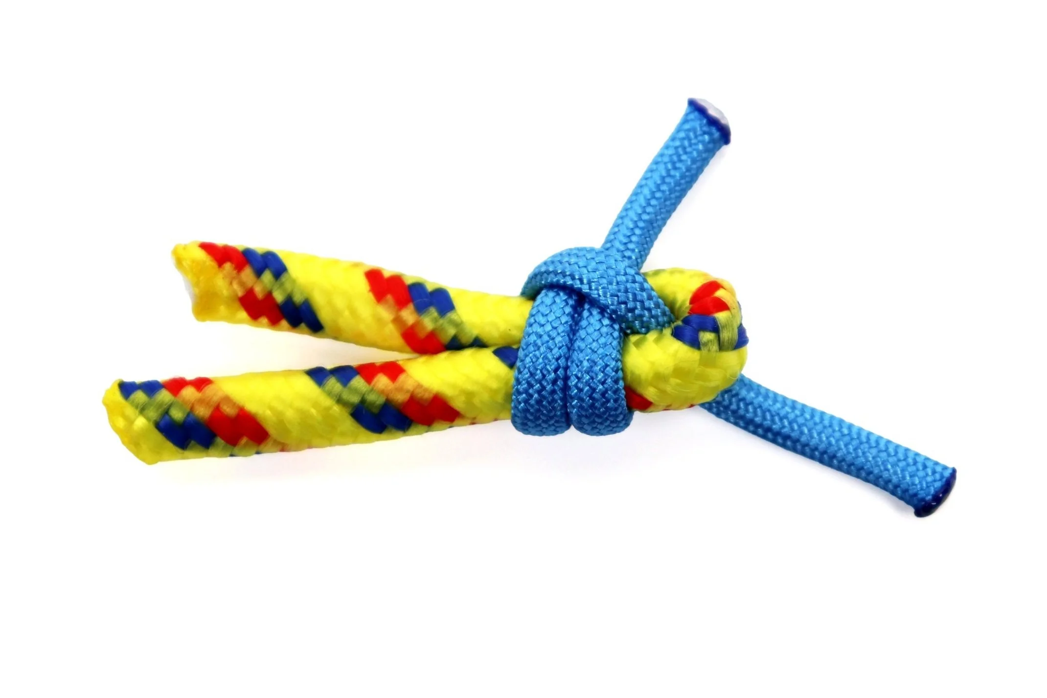 The thinner rope is attached to the thicker rope using a seizing bend. “Seizing” is the term for fastening two poles or two pieces of rope together. It is often used for “heaving” : when a lightweight throwing line (“messenger”) is tied to the bight of a heavier rope (“hawser”) that needs to be hauled into position.This knot is usually used while towing or docking a boat.