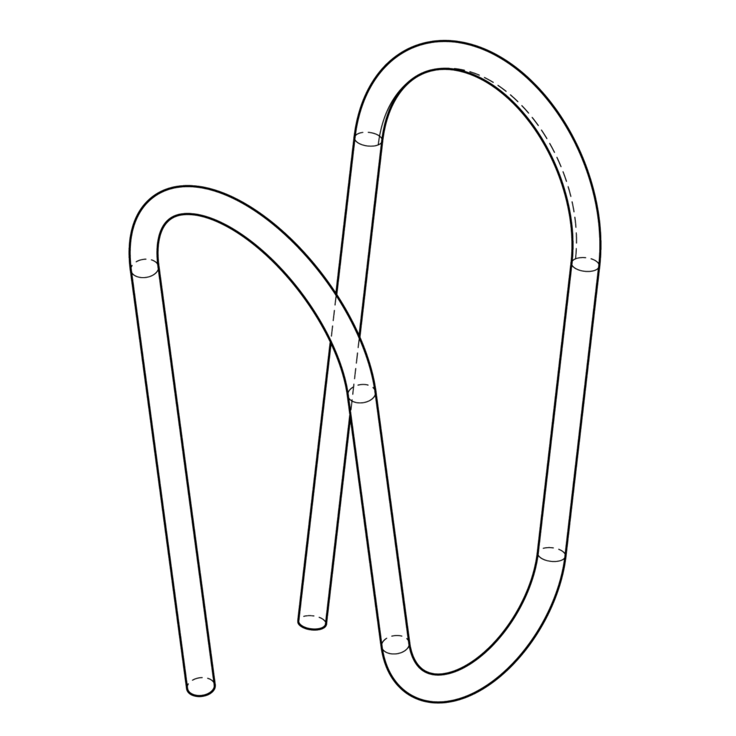 A cast aluminum piece is inserted into the top of the two aluminum tube legs. This creates the “bight” necessary for the racking bend. “Racking” is the term for figure-of-eight interweaving between two parts. This knot is usually used to join two ropes of different diameters.