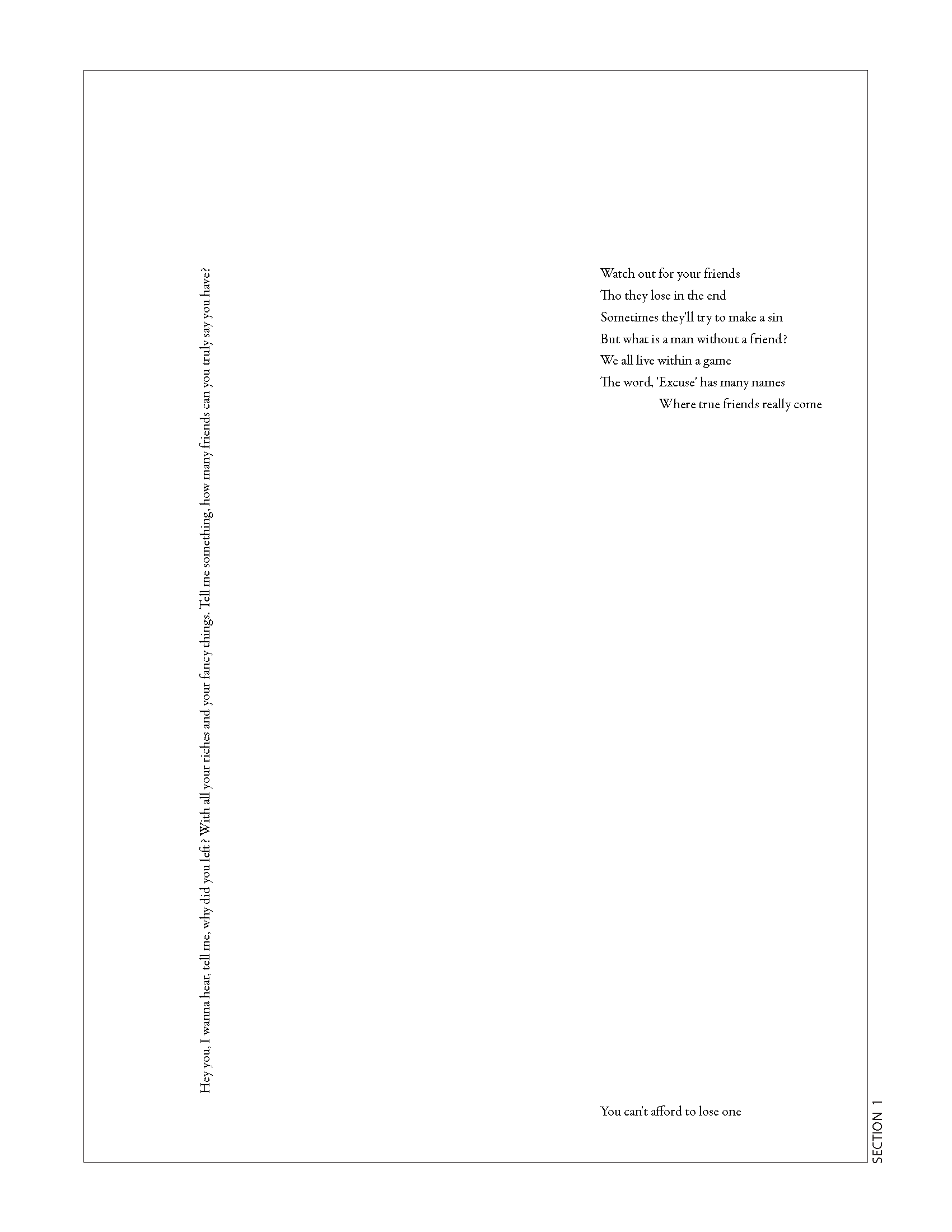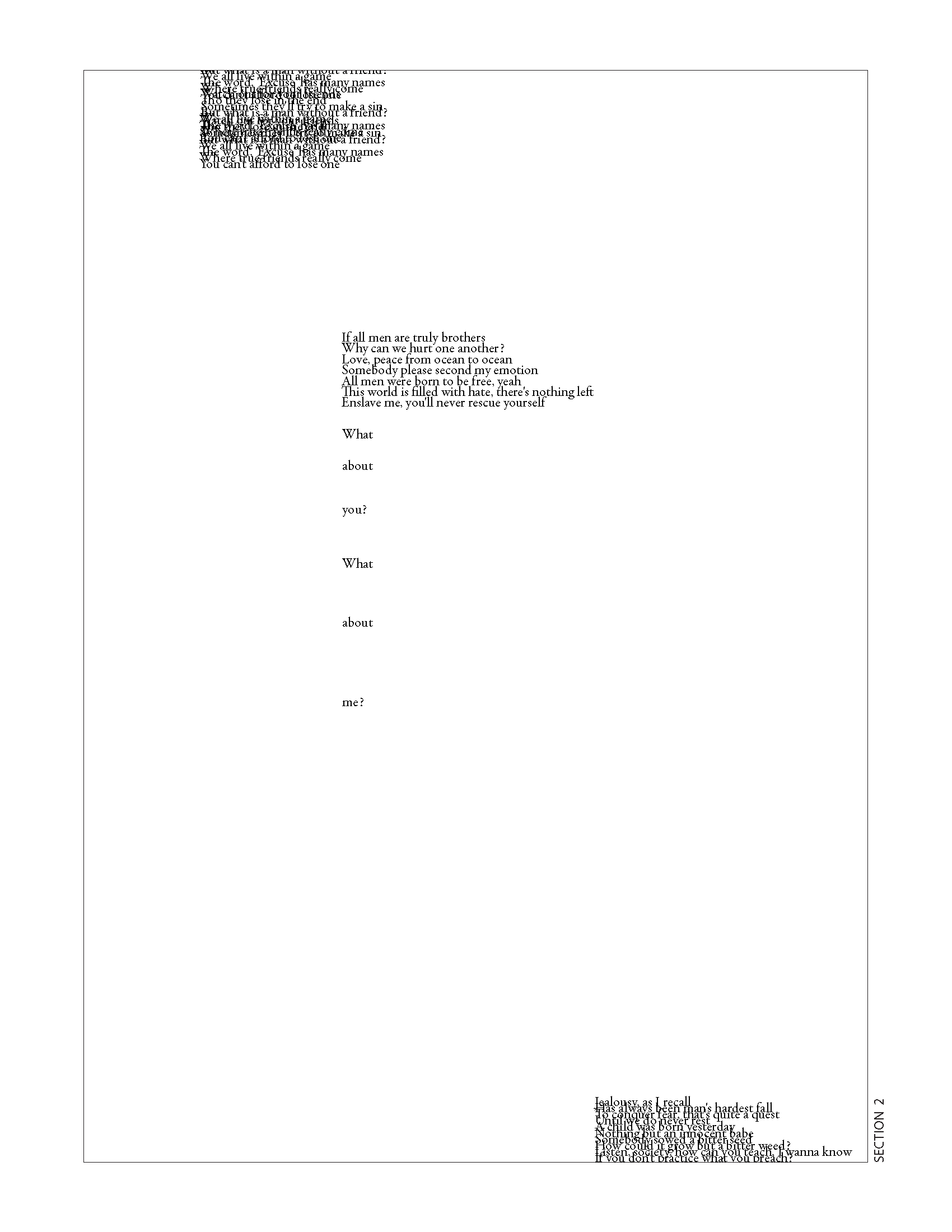 A three-part project translating song lyrics into different graphic formats using primarily the manipulation of type to create visual compositions.