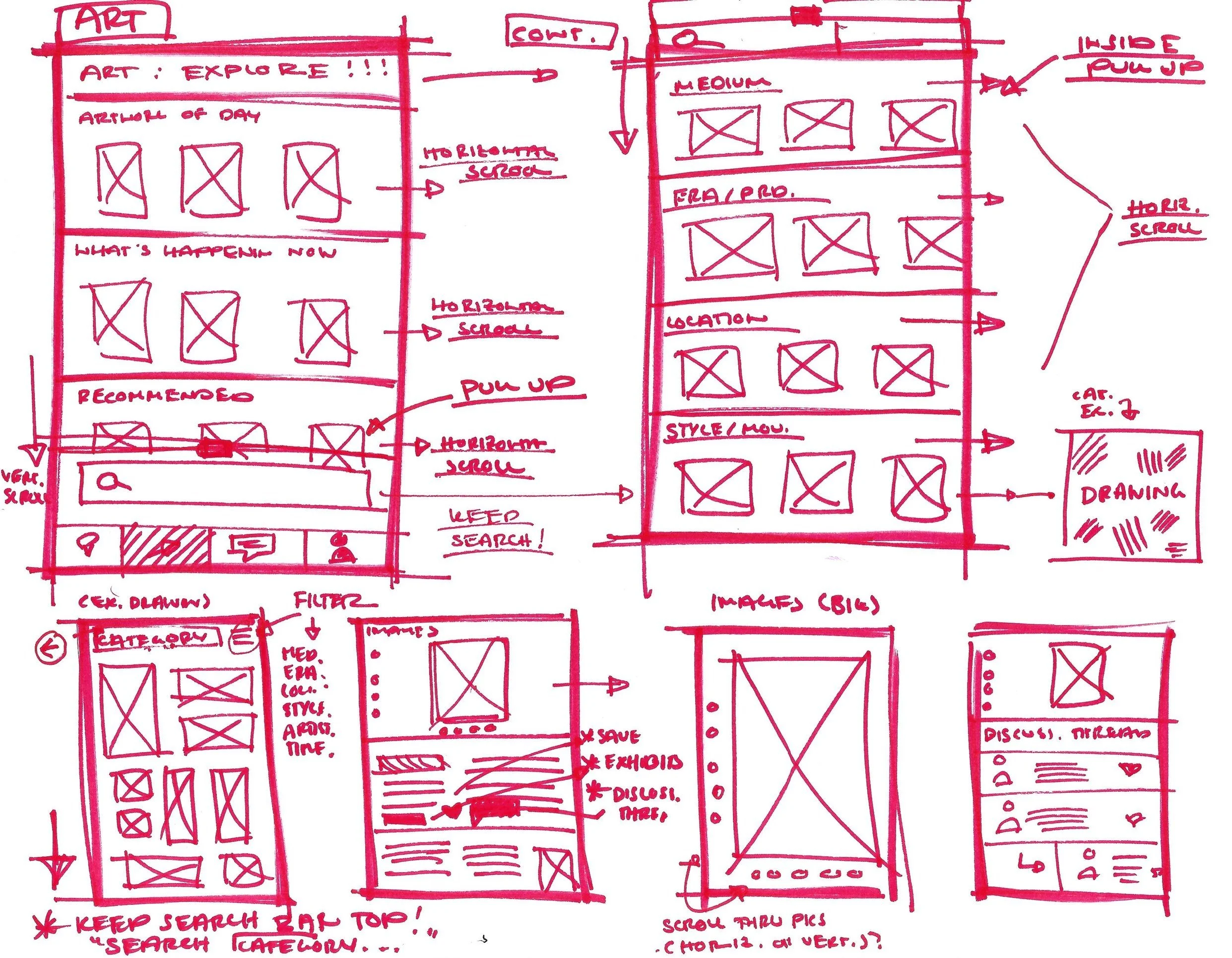 from ideation to drawn prototypes tested by users attempting to complete specific tasks based on user personsas